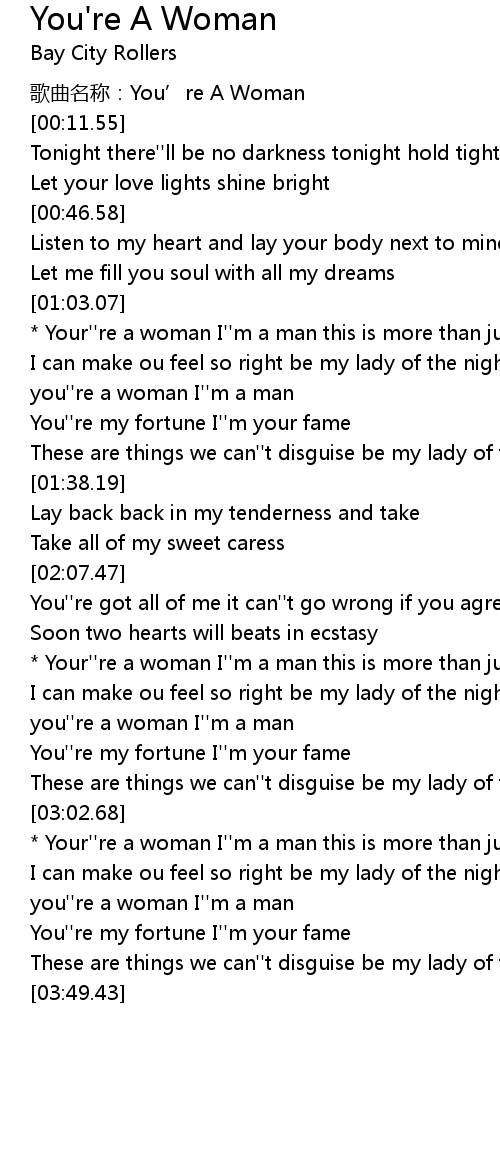 | [00:07.83] | 歌曲名称:You’re A Woman |