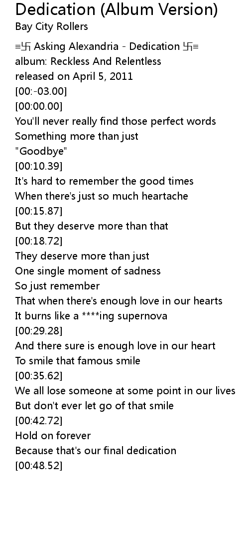 | [00:-06.00] | wàn Asking Alexandria Dedication wàn |