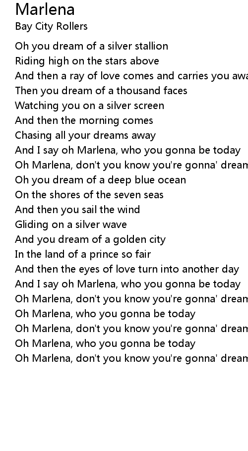 Oh Marlena, don't you know you're gonna' dream your life away |