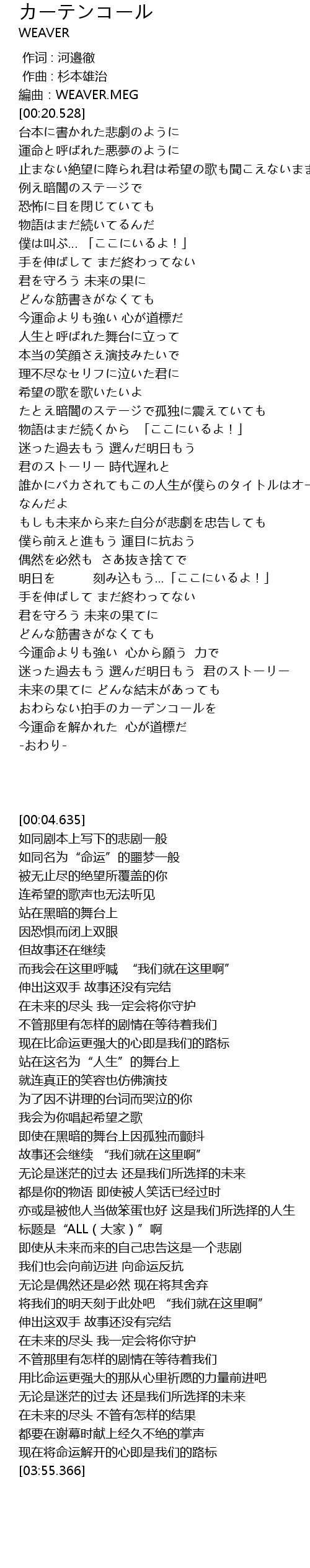 | [03:36.703] | おわらない拍手のカーデンコールを |