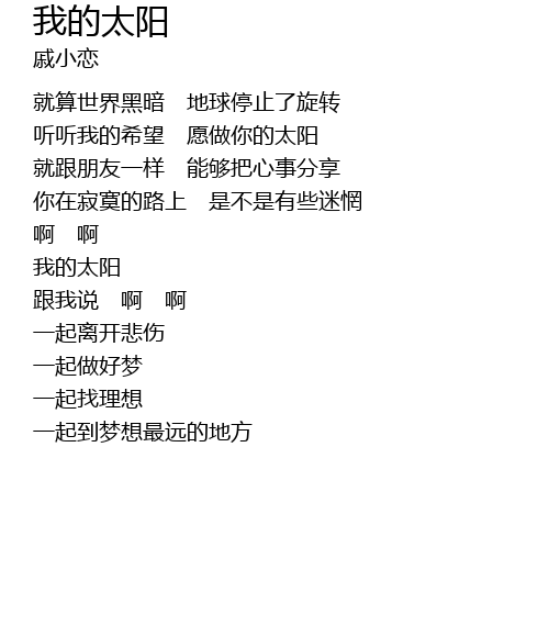 | tīng tīng wǒ de xī wàng yuàn zuò nǐ de tài yáng | |