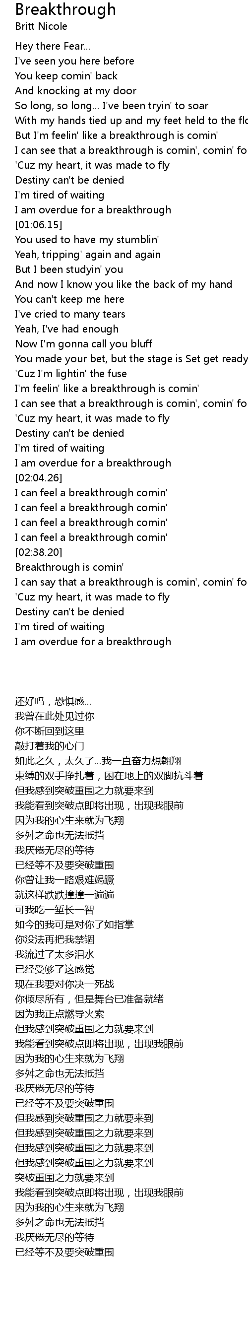 But I'm feelin' like a breakthrough is comin' |