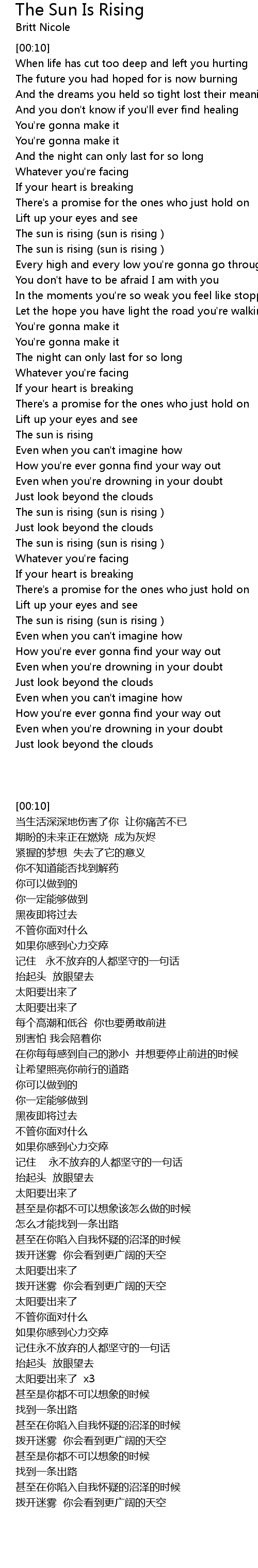 The Sun Is Rising Lyrics