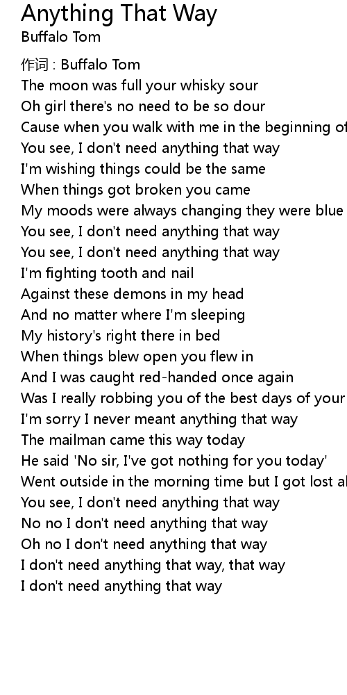 | 作词 : Buffalo Tom | |