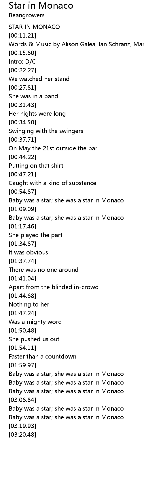 [00:11.87] Words & Music by Alison Galea, Ian Schranz, Mark Sansone