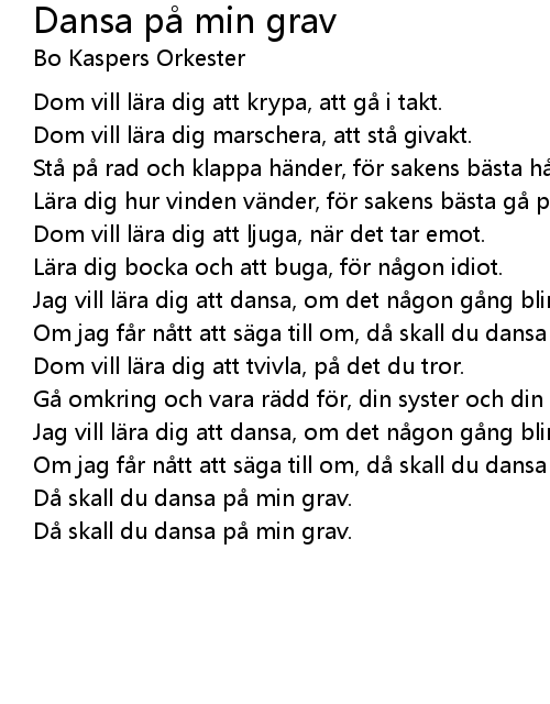 | Om jag f r n tt att s ga till om, d skall du dansa p min grav. | |