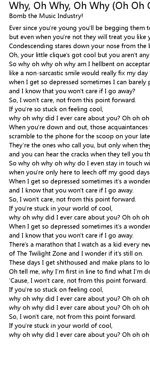 why oh why did I ever care about you? Oh oh oh oh, oh oh oh oh.