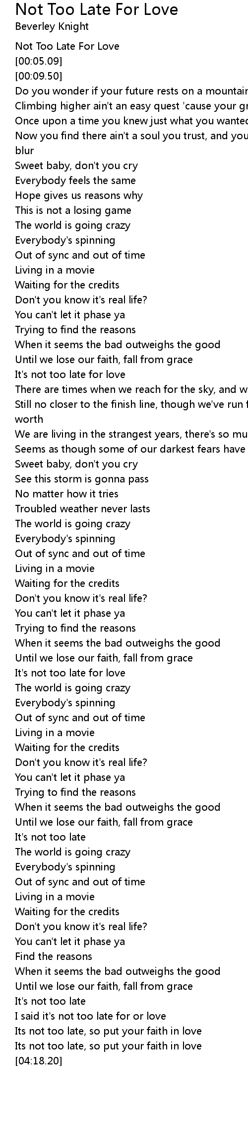 I said it's not too late for or love |