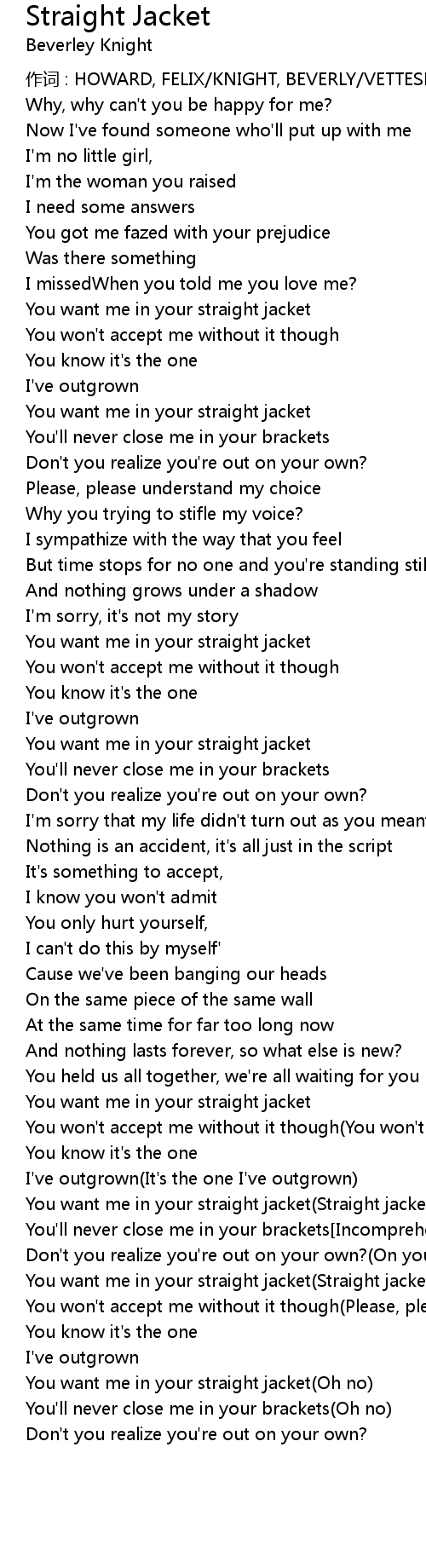 | You want me in your straight jacket Straight jacket | |