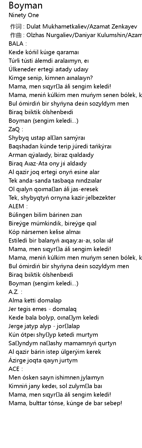 | [00:00.000] | 作词 : Dulat Mukhametkaliev/Azamat Zenkayev |