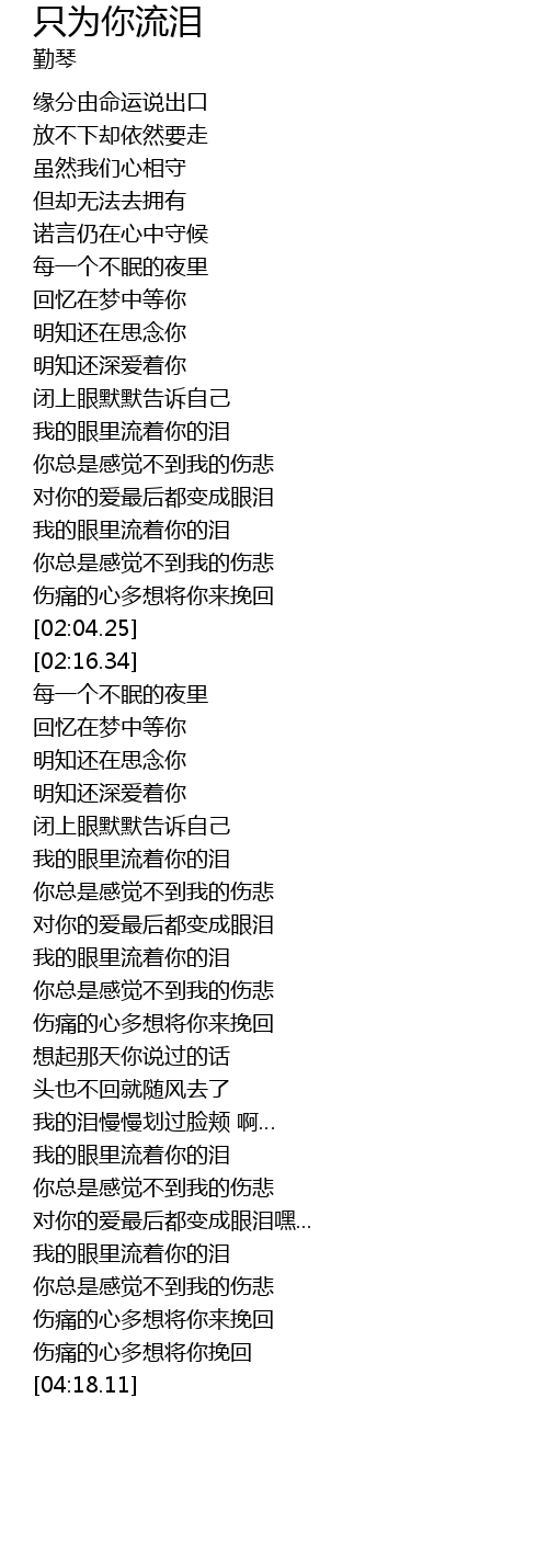 | [03:48.46] | 对你的爱最后都变成眼泪嘿... |