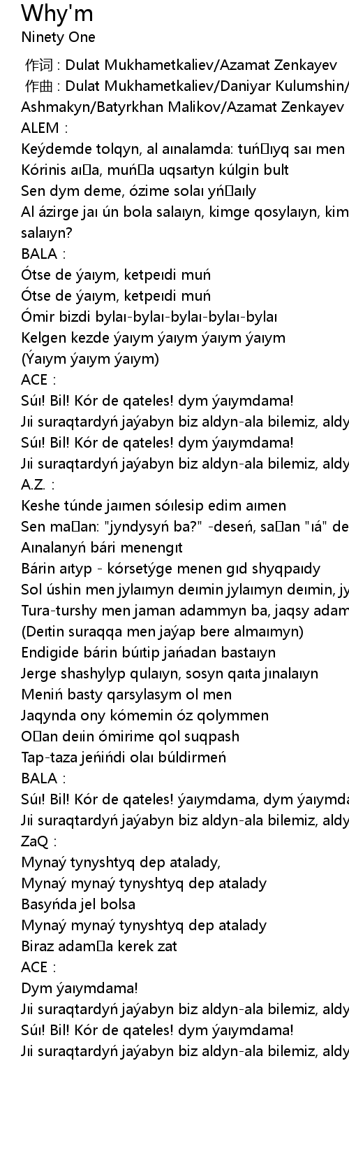 | [02:35.55] | J i suraqtardy ja abyn biz aldynala bilemiz, aldynala sen! |