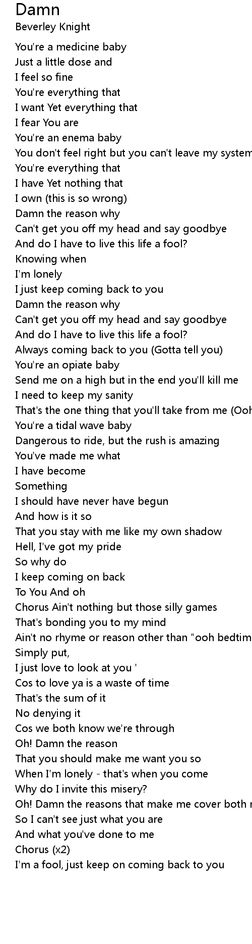 Damn the reason why |