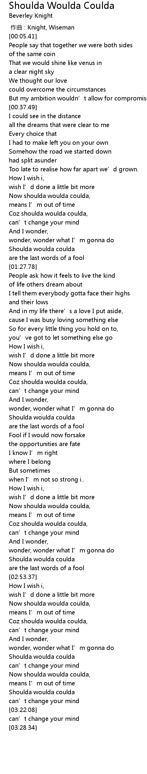 | [03:16.12] | Shoulda woulda coulda |