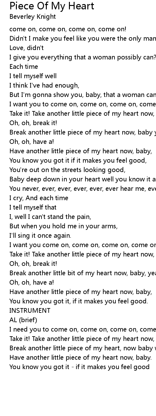 Take it! Take another little piece of my heart now, baby! oh, oh, break it! |