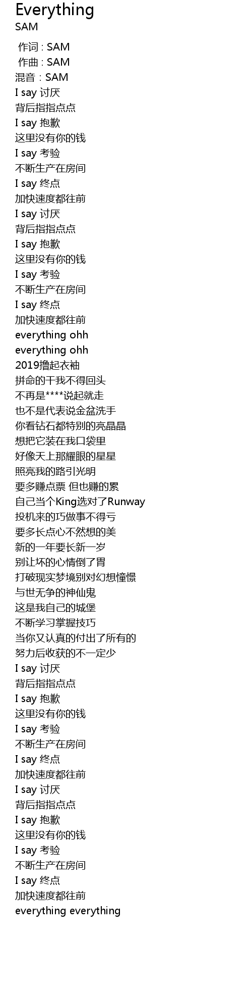 | [00:00.000] | 作词 : SAM |