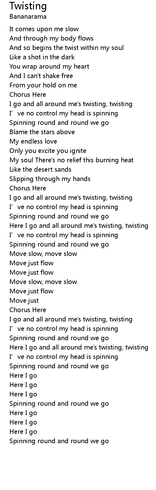 | Here I go and all around me' s twisting, twisting | |