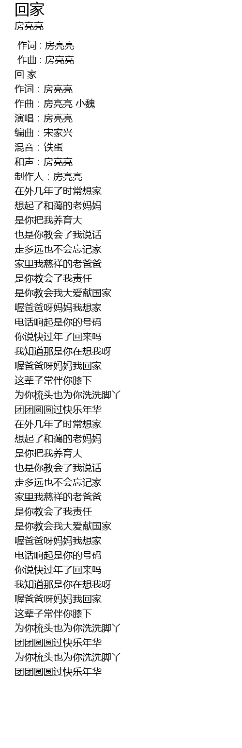 | [01:59.575] | 喔爸爸呀妈妈我回家 |