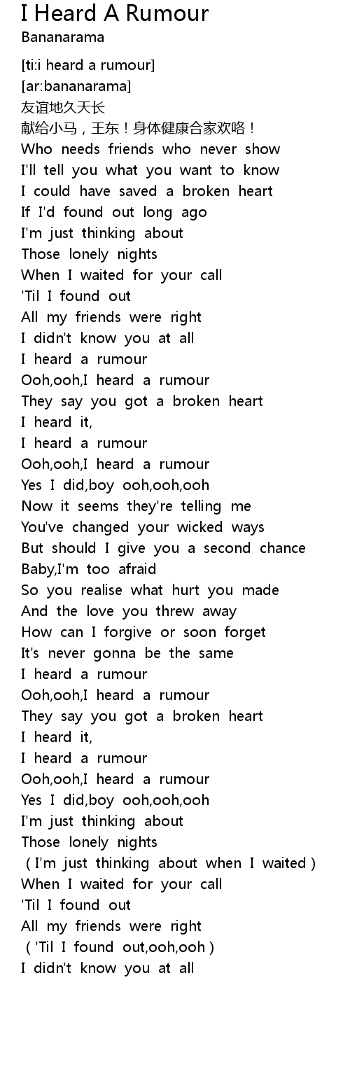 | [00:58.32] | Ooh,ooh,I heard a rumour |