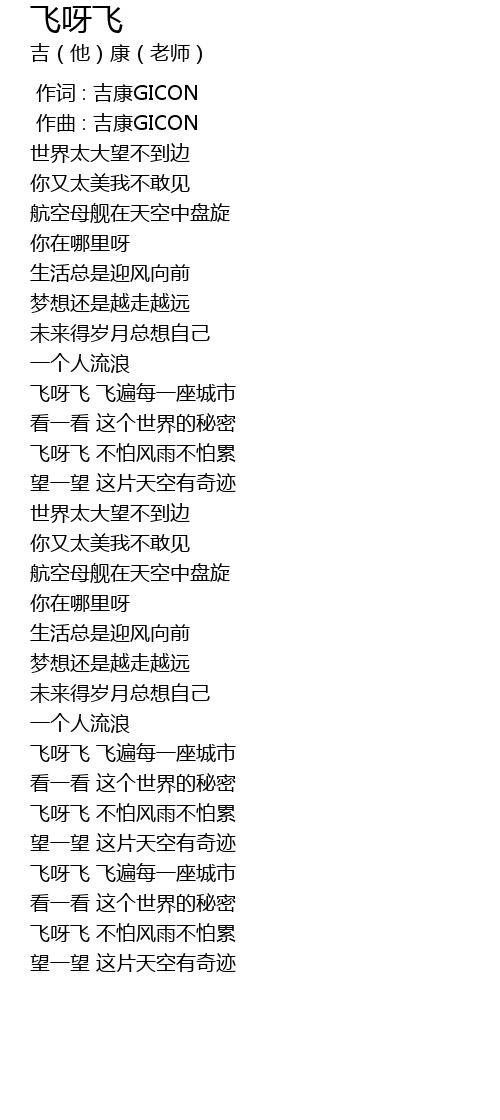 | [02:29.06] | 飞呀飞 飞遍每一座城市 |