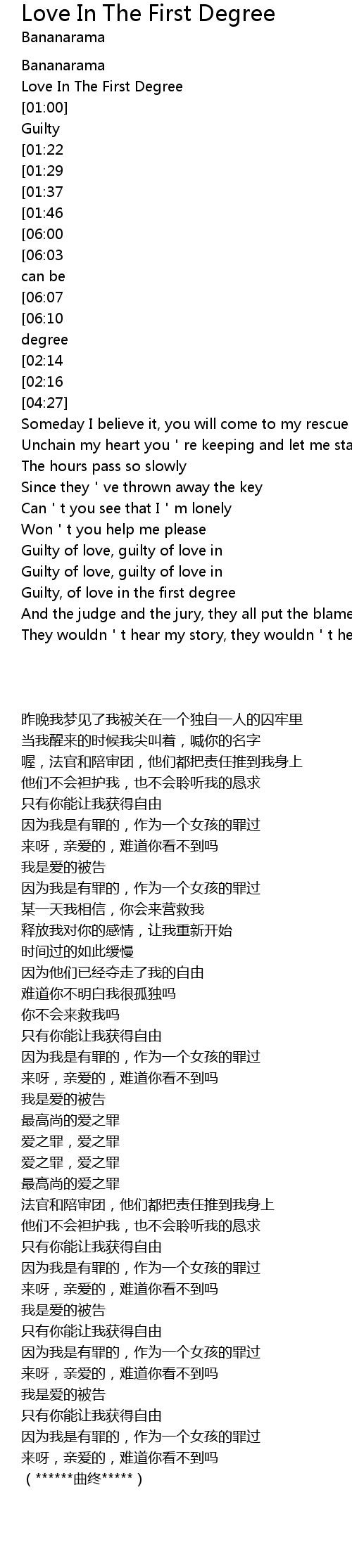 | [06:27][06:10][04:16][04:00][03:03][02:05] | I stand accused of love in the first degree |