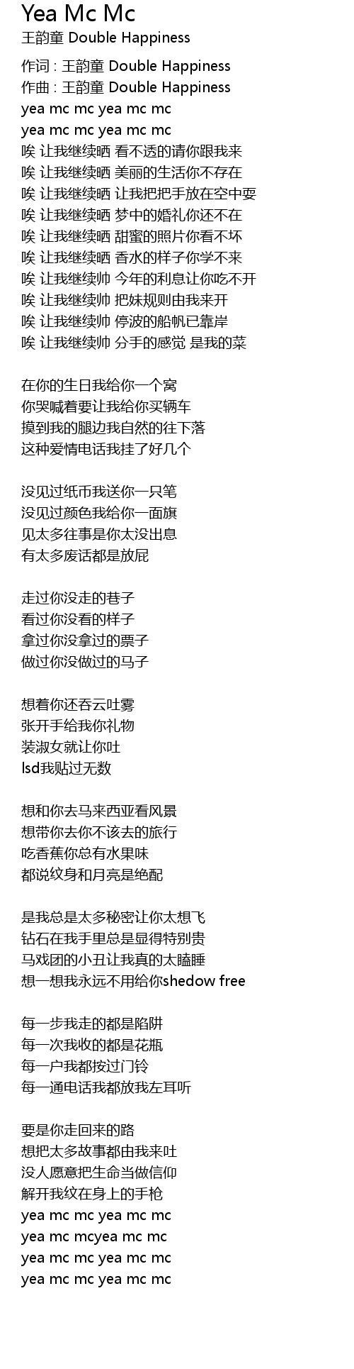 | zuò qǔ : wáng yùn tóng Double Happiness | |