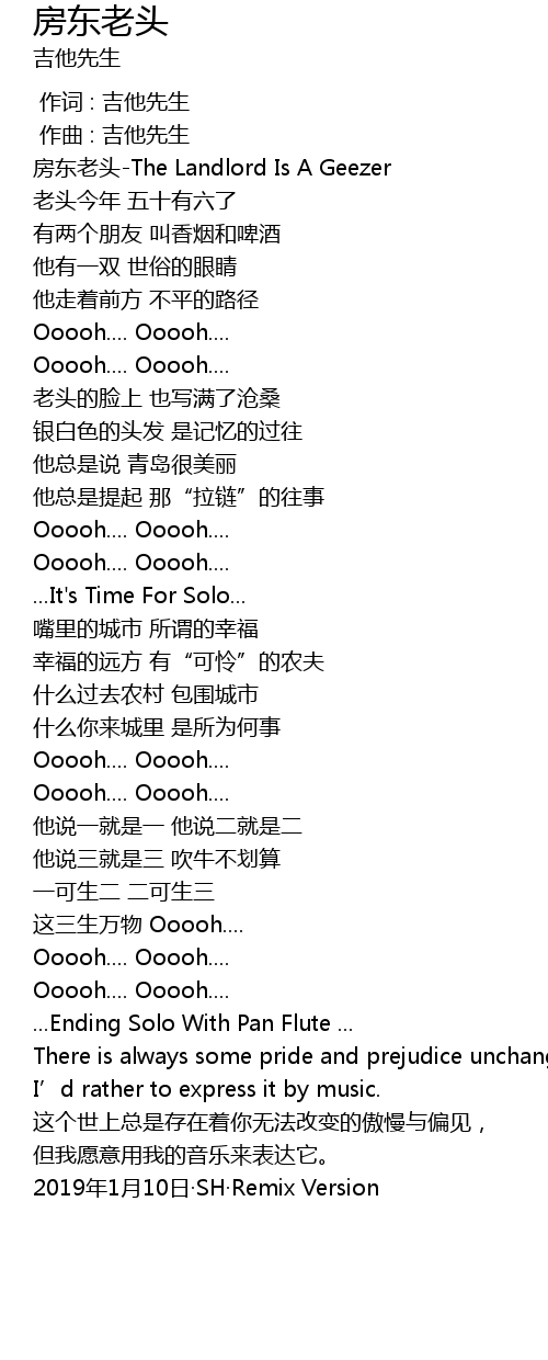 | [00:03.32] | 房东老头-The Landlord Is A Geezer |