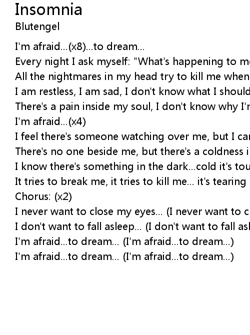 All the nightmares in my head try to kill me when I'm asleep. |