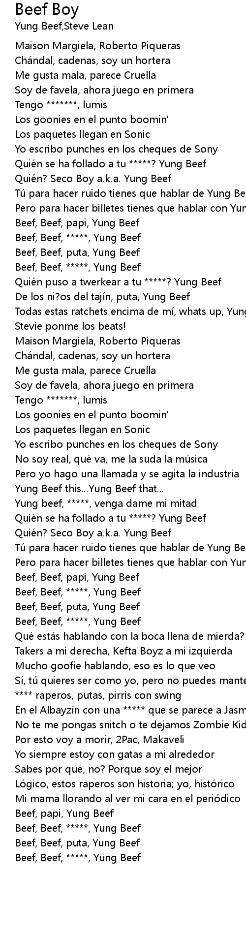 | [02:05.04] | Beef, Beef, puta, Yung Beef |