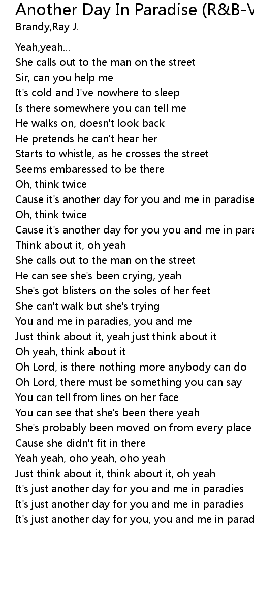 | Cause it's another day for you you and me in paradise | |
