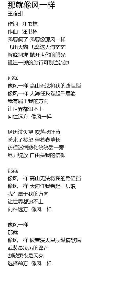| wǒ yào fēng le wǒ yào xiàng nà fēng yí yàng | |