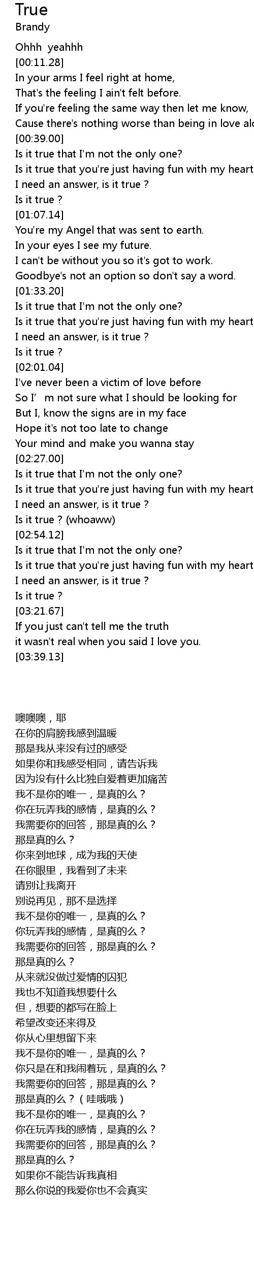 | [00:39.74] | Is it true that I' m not the only one? |