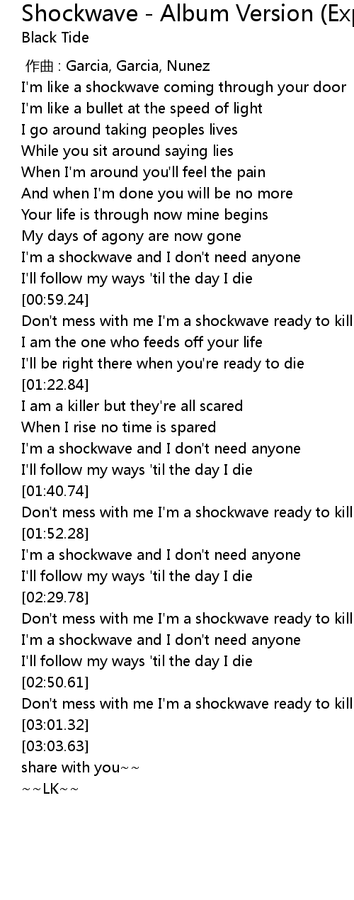 | [00:48.76] | I' m a shockwave and I don' t need anyone |