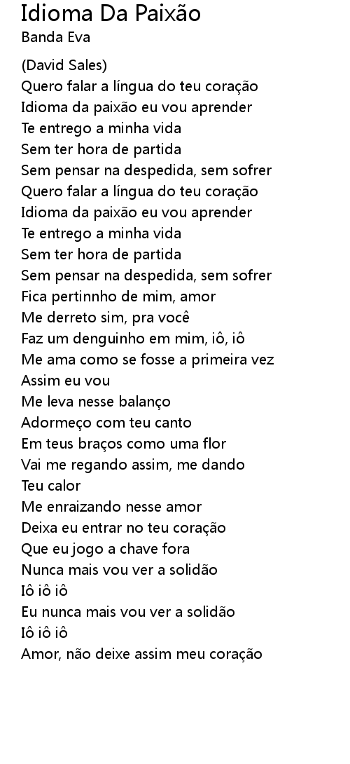 | Song | Idioma Da Paixão |