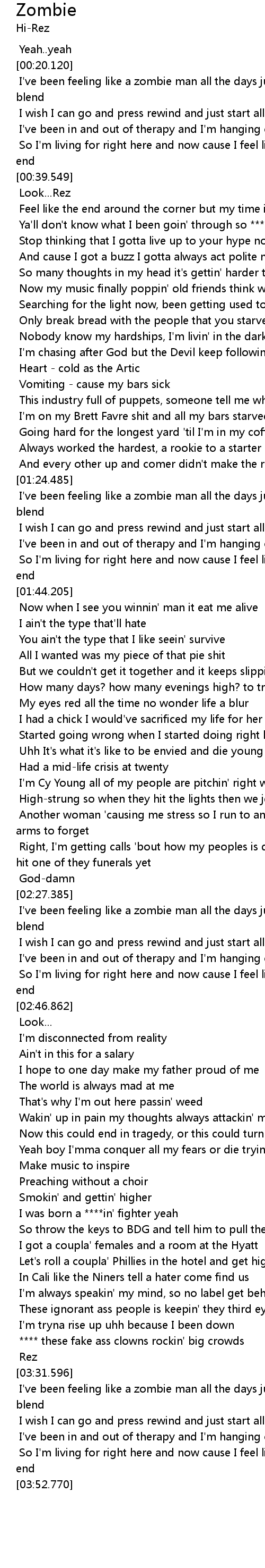 I've been feeling like a zombie man all the days just starting to blend |
