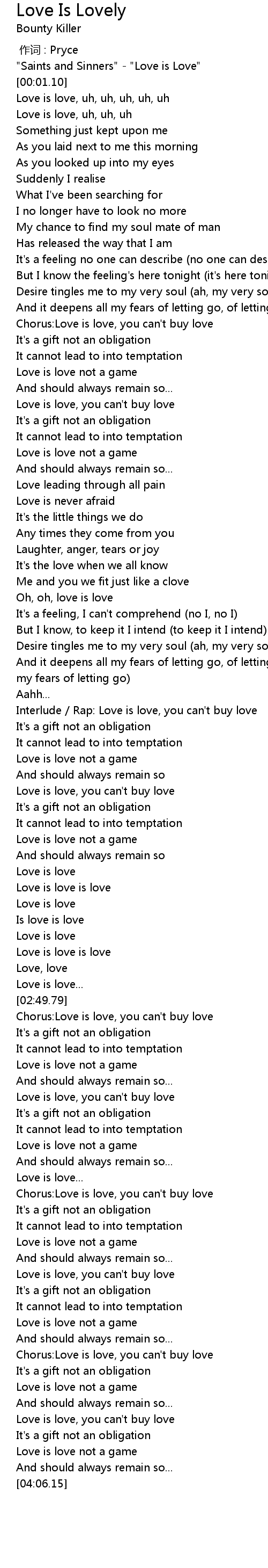| [02:06.94] | Interlude Rap: Love is love, you can' t buy love |
