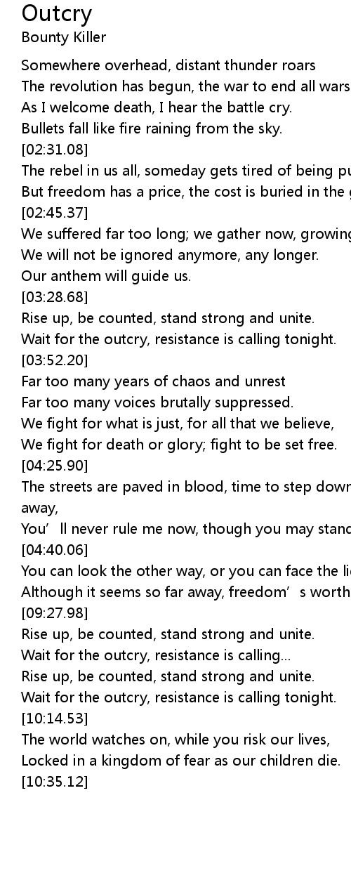 | [09:40.77] | Wait for the outcry, resistance is calling... |
