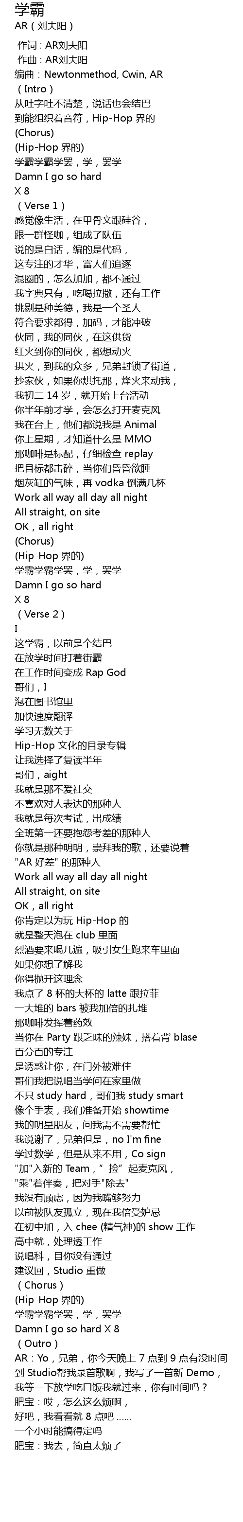 | [02:47.933] | 哥们我把说唱当学问在家里做 |