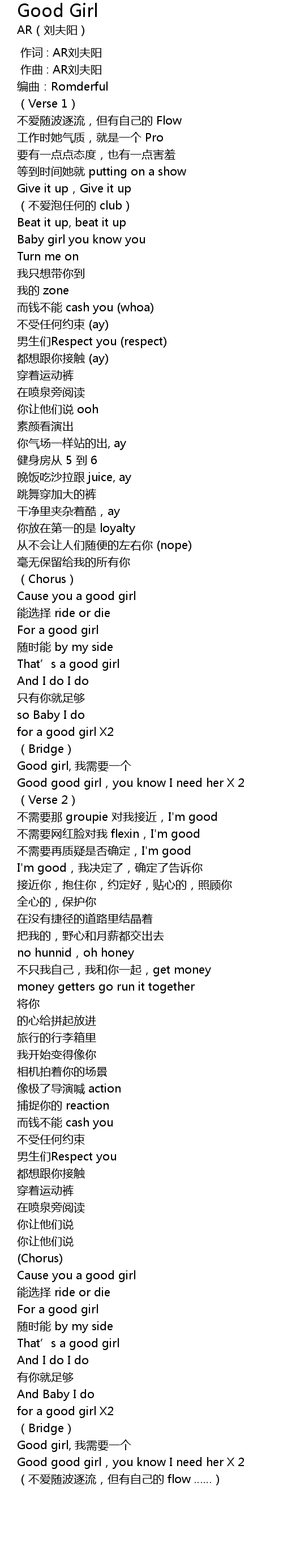 | [01:19.525] | Good girl, wo xu yao yi ge |