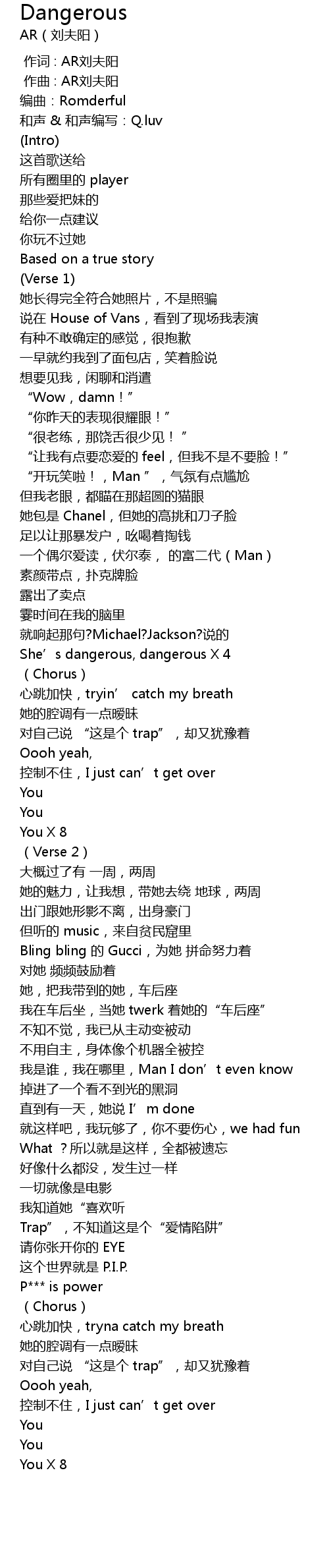 | [00:49.706] | She' s dangerous, dangerous X 4 |