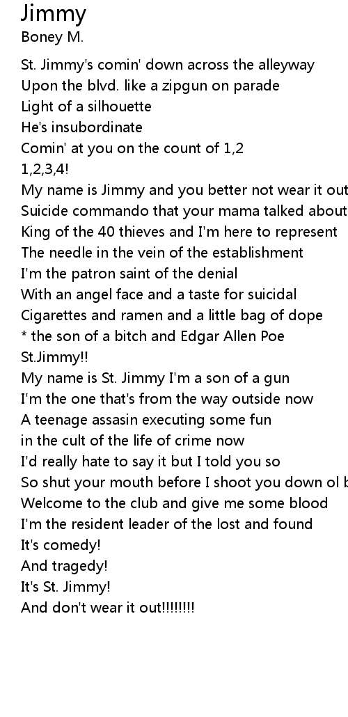 My name is St. Jimmy I'm a son of a gun |
