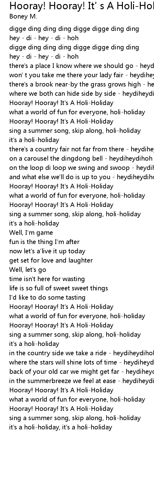Hooray! Hooray! It' s A Holi-Holiday Lyrics