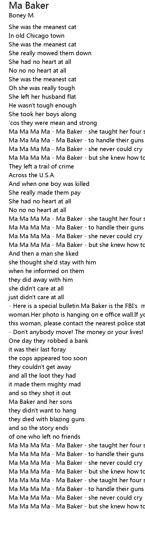 Ma Ma Ma Ma - Ma Baker - but she knew how to die |