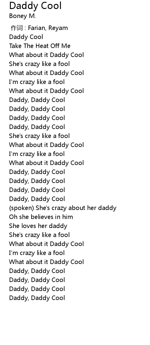 | [00:56.99] | What about it Daddy Cool |