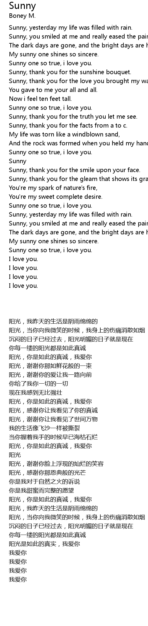 Sunny, yesterday my life was filled with rain. |