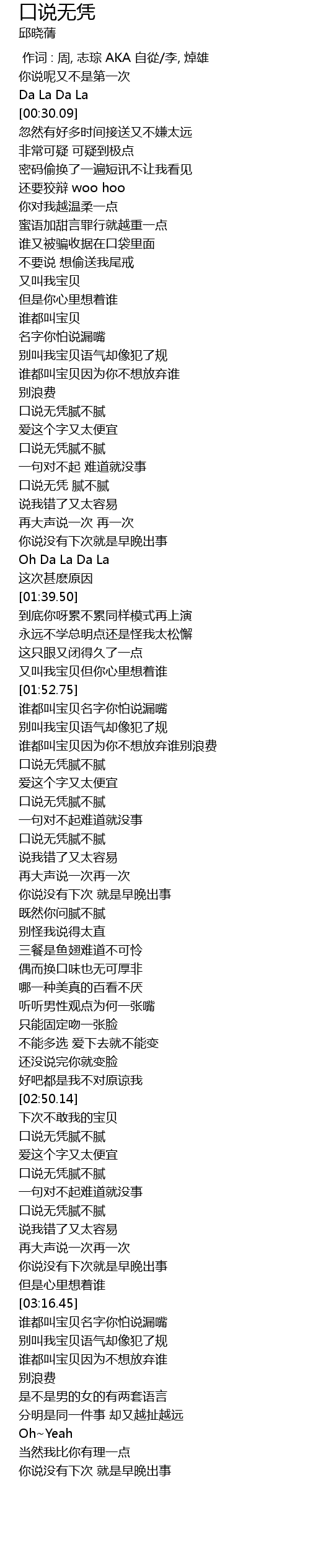 | [03:03.47] | kou shuo wu ping ni bu ni |