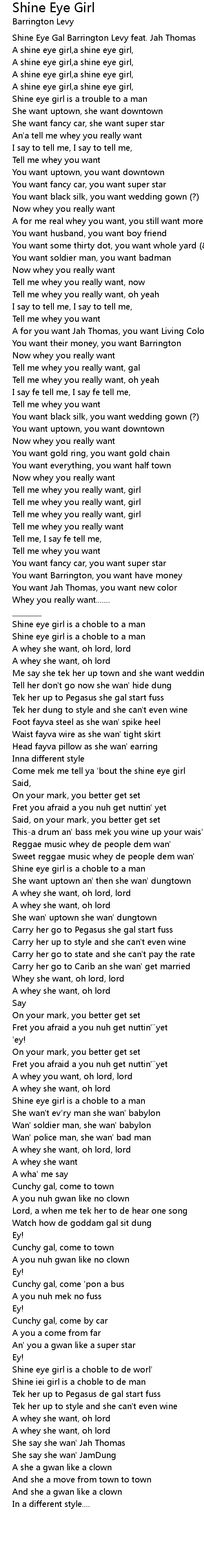 | Come mek me tell ya ' bout the shine eye girl | |