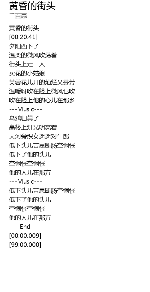 | [00:38.68] | mài huā de xiǎo gū niáng |