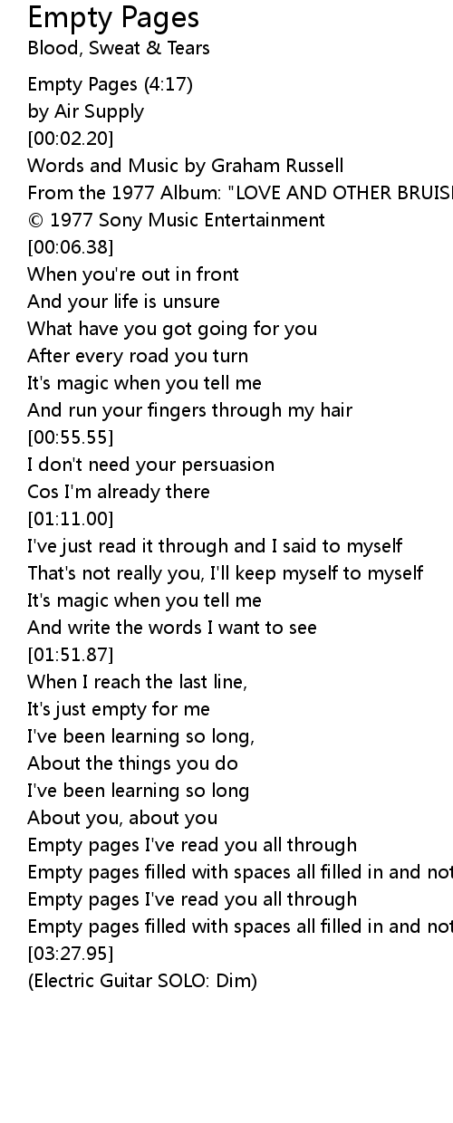 | [02:48.84] | Empty pages filled with spaces all filled in and not filled in |