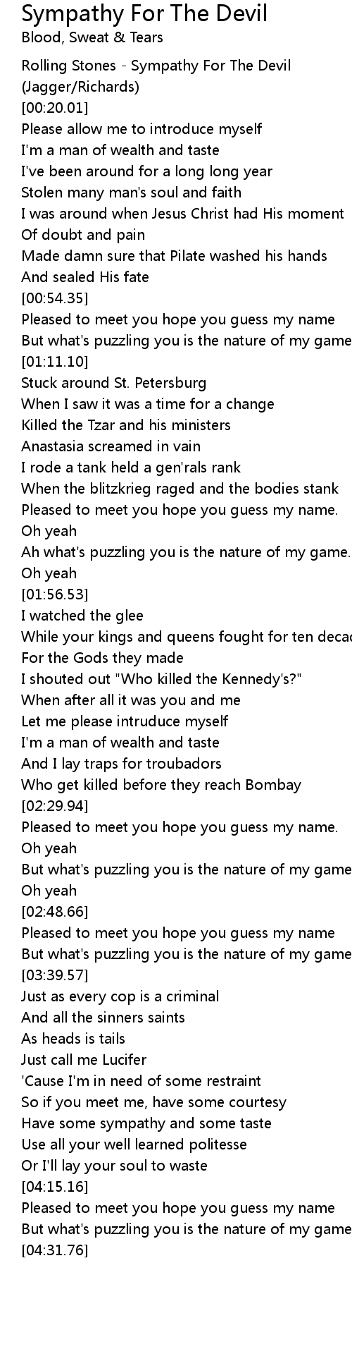 [00:00.00] Rolling Stones - Sympathy For The Devil